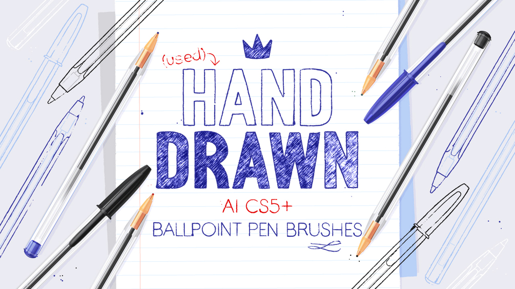 130+ pressure sensitive, ballpoint pen brushes for Adobe Illustrator CS5 and up.