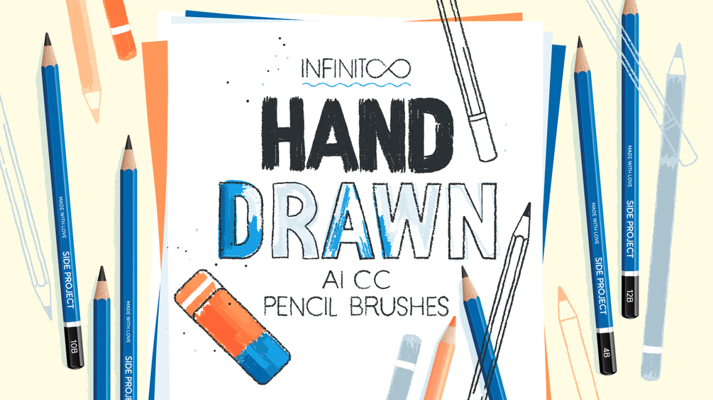 You will get a collection of 65 pressure sensitive Infinito soft lead pencil brushes for Adobe Illustrator CC, that will help you give your vector artwork a hand drawn look. They are based on actual soft lead pencil strokes. The resulting brushes have varying degrees of texture and thickness.